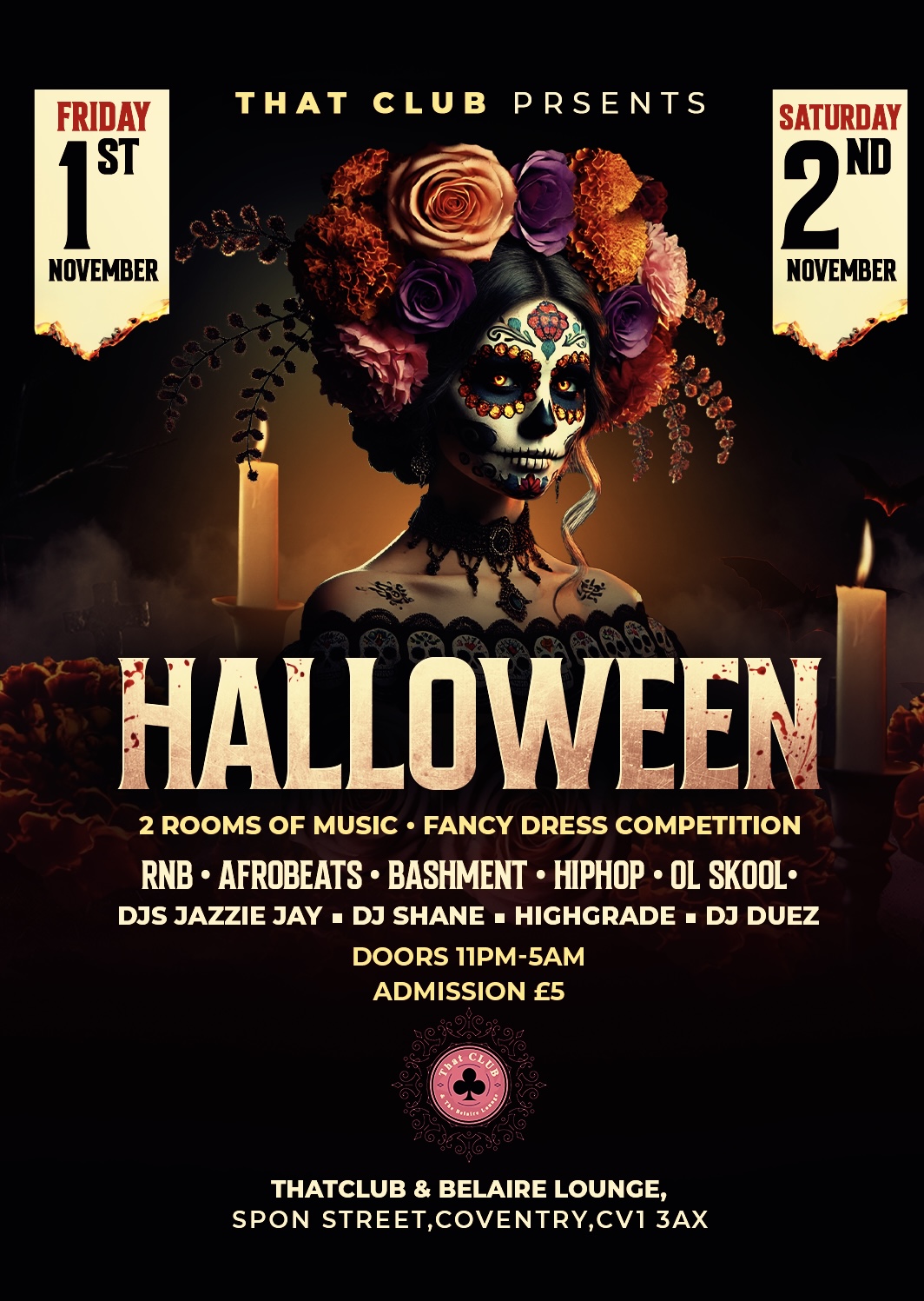 Come join us for a spooktacular night at That Club and The Bellaire Lounge for a Halloween bash you won't forget! Get ready for a night filled with costumes, dancing, and thrills. Whether you're a witch, a zombie, or a vampire, all are welcome to celebrate this haunting holiday with us. Don't miss out on the fun - mark your calendars and get your best costume ready for a night of tricks and treats. See you there!