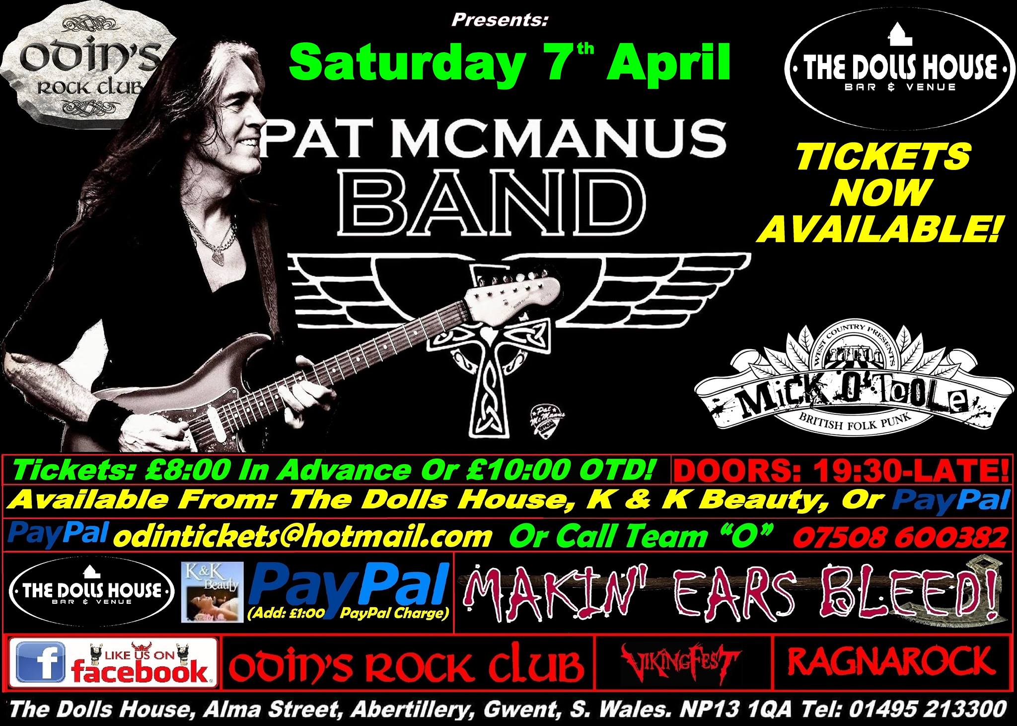 The Legendary Pat McManus plays the Dolls House in Abertillery, with support from Mick O Toole, a British Folk Punk Band. Doors open at 7.30 Til Late.