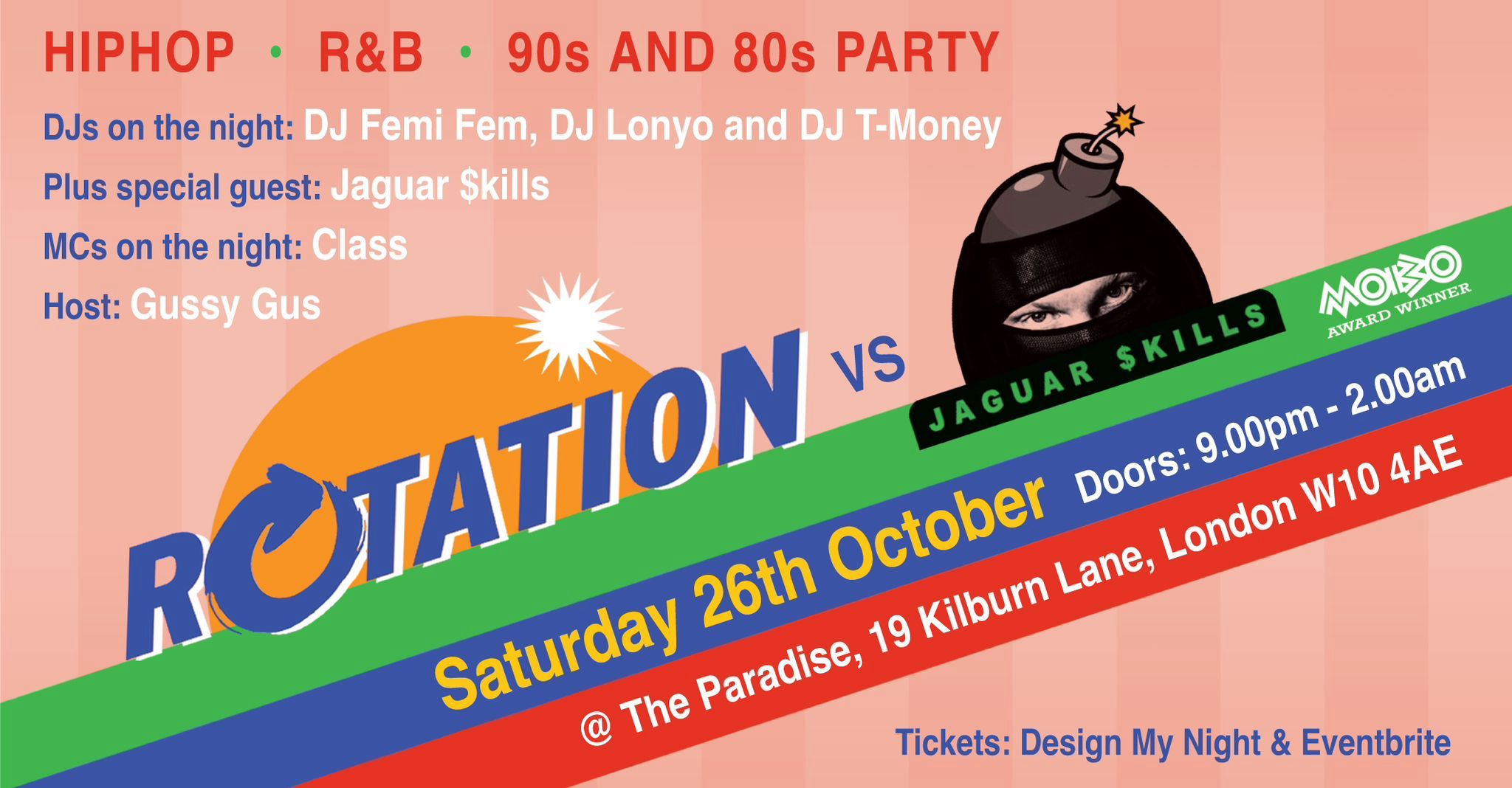 🔥🔥 Come join us for the MOBO Award-winning **Rotation** as we welcome the one & only 🕺🏾DJ Jaguar $kills🕺🏾! 🔥🔥
