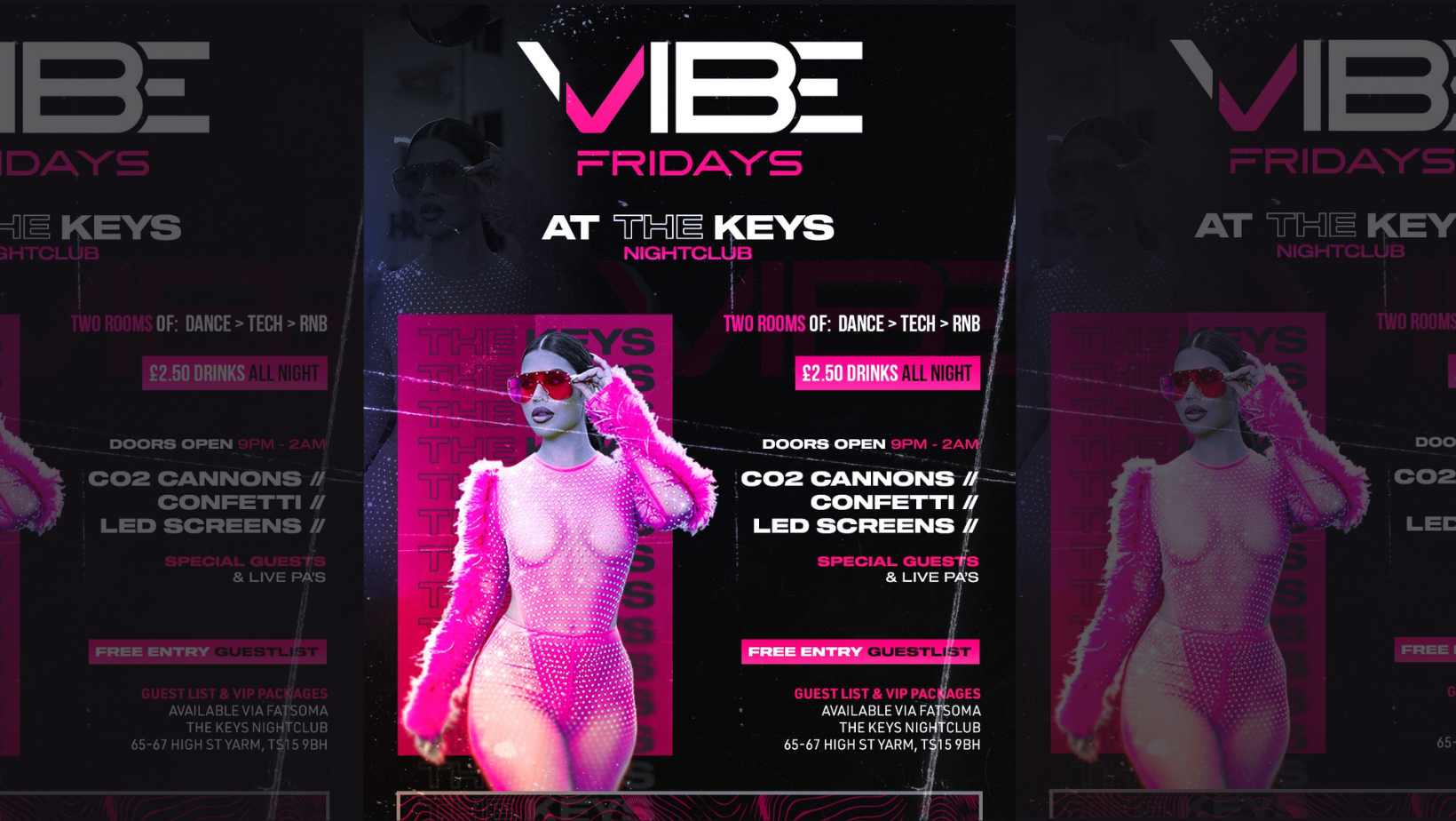 Join us every Friday as we kickstart the weekend bringing a whole new VIBE to your Friday nights at one of Yarm's most iconic venues THE KEYS NIGHTCLUB in Yarm.