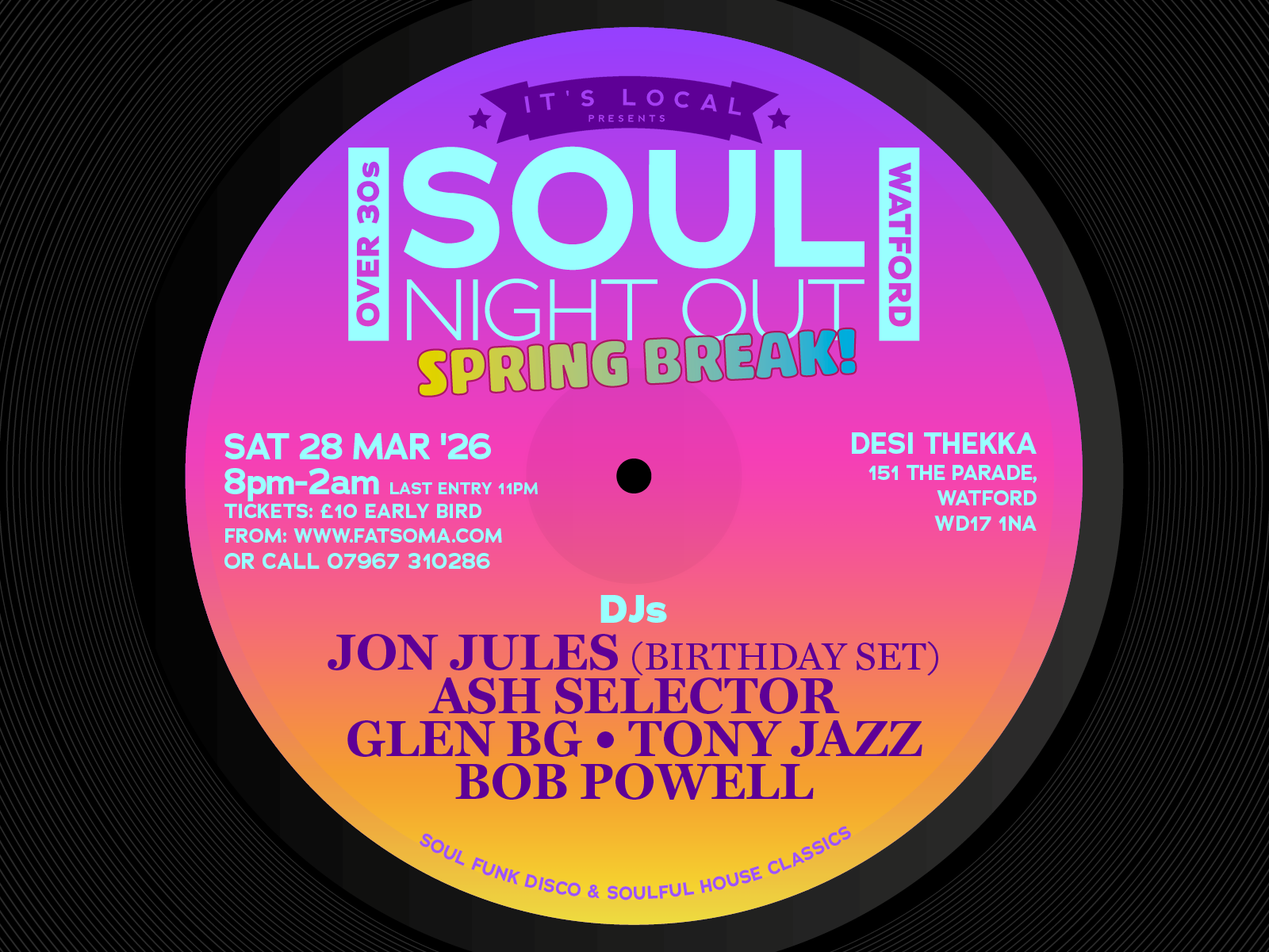 🔞 Age Policy: This is an over 30’s Soul Night out. Friends aged 25+ are also welcome!