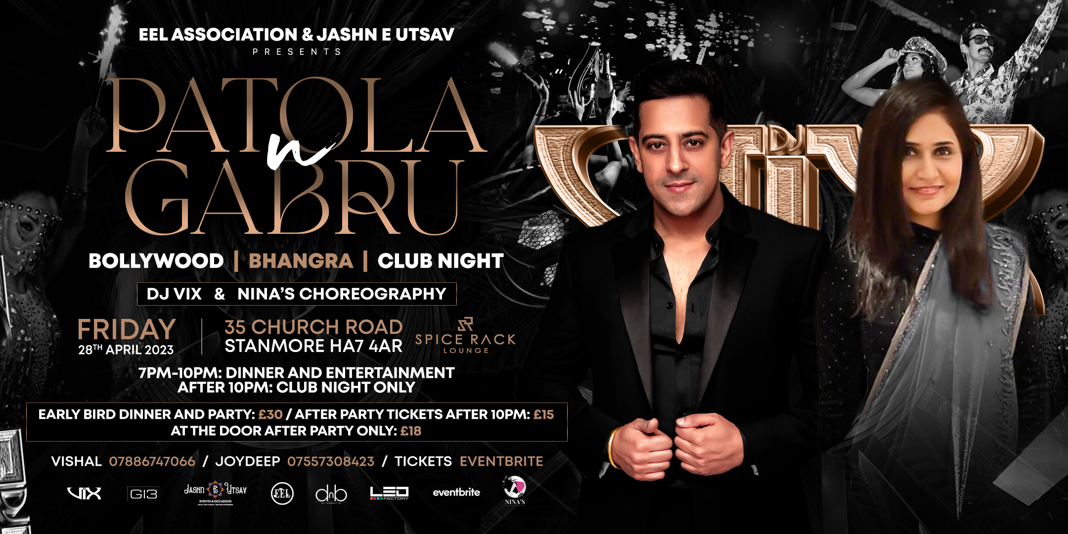 Jashn E Utsav & Spice Rack Lounge presents the 'Patola and Gabru Bollywood night'' on April 28th