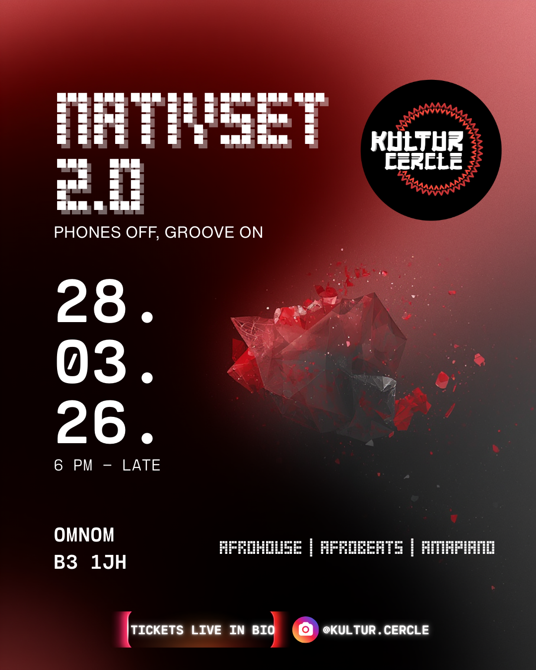 An intimate Afrohouse, Afrofusion & Afrobeats dance experience curated by Kultur Cercle.