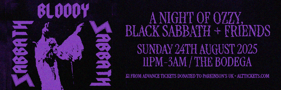 A night of Ozzy, Black Sabbath + friends. Taking over The Bodega on Sunday 24th August 2025, right Back to the Beginning rolling through Black Sabbath classics, solo anthems and turning up the night with a royal gothic party.