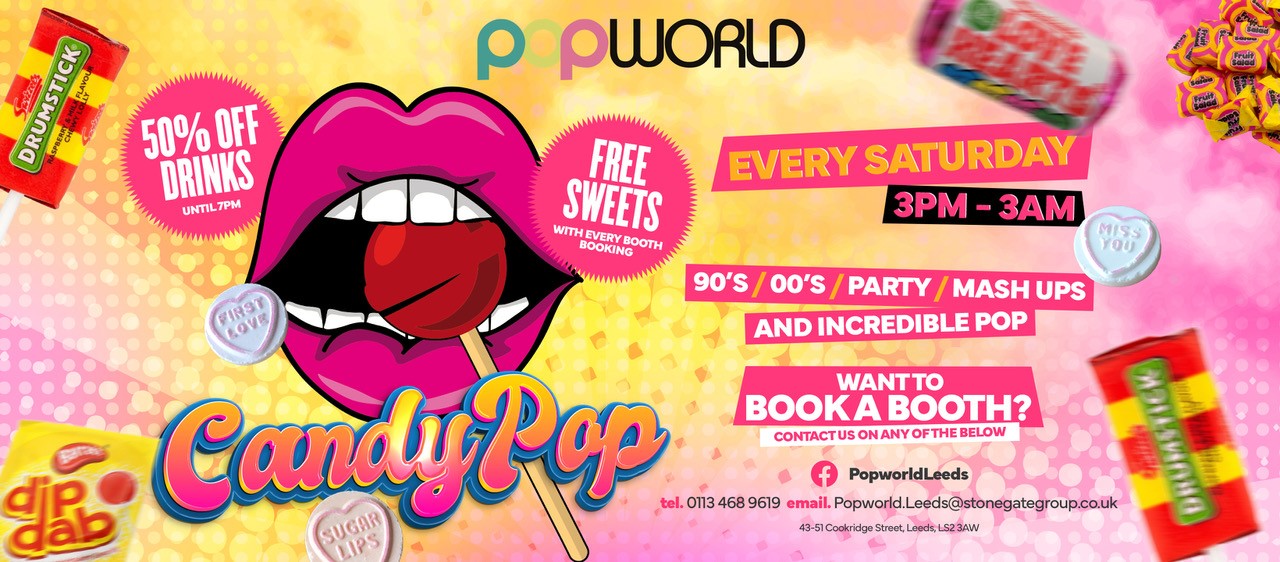 Join us every Saturday from 2pm for an unforgettable night of partying and singing along to your favourite POPWORLD classics! DJ Ben will be here blasting out your favourite tunes from 3pm to get you in the party mood! 🎉