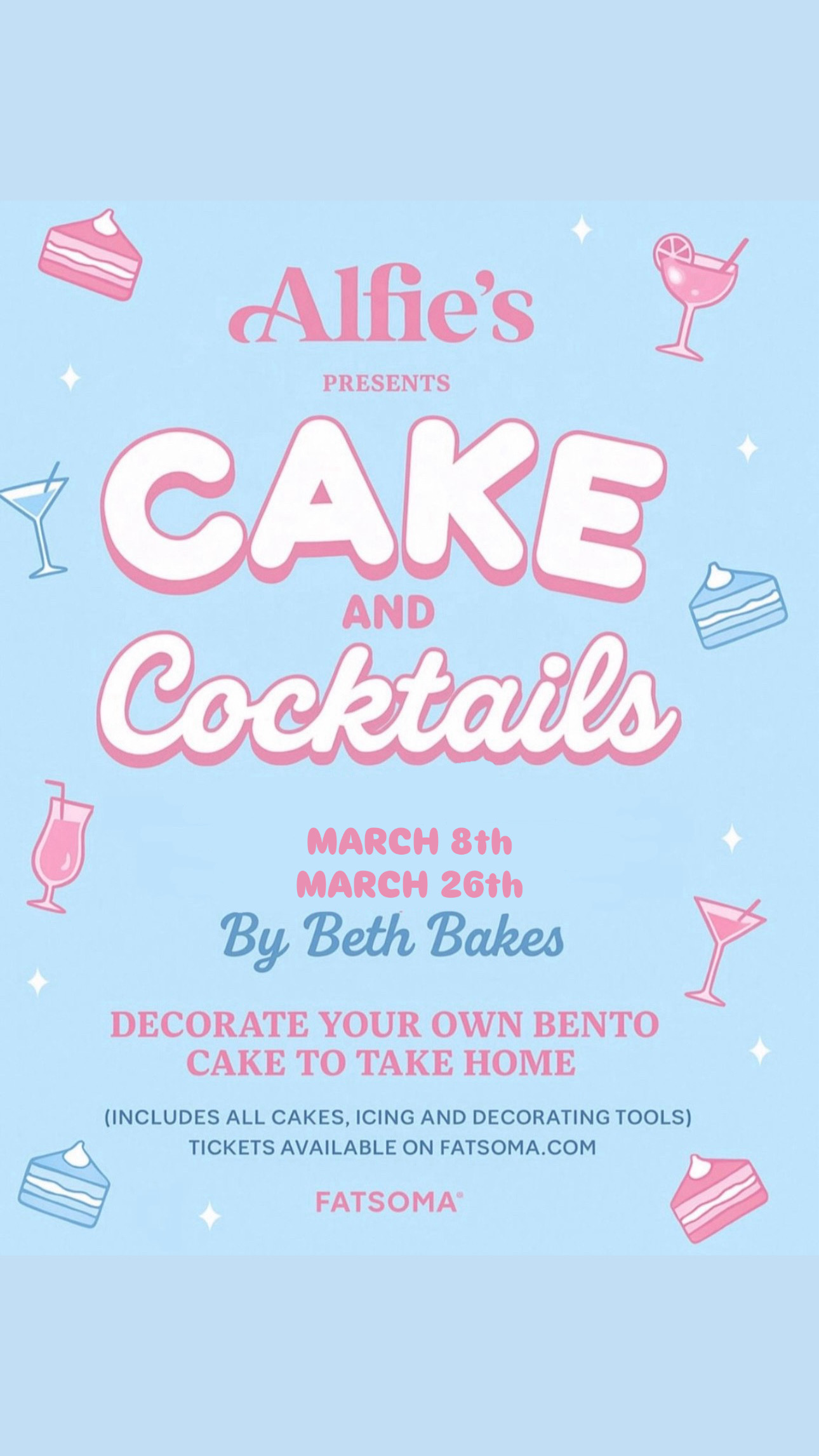 Alfies presents Cakes and cocktails- by Beth bakes.