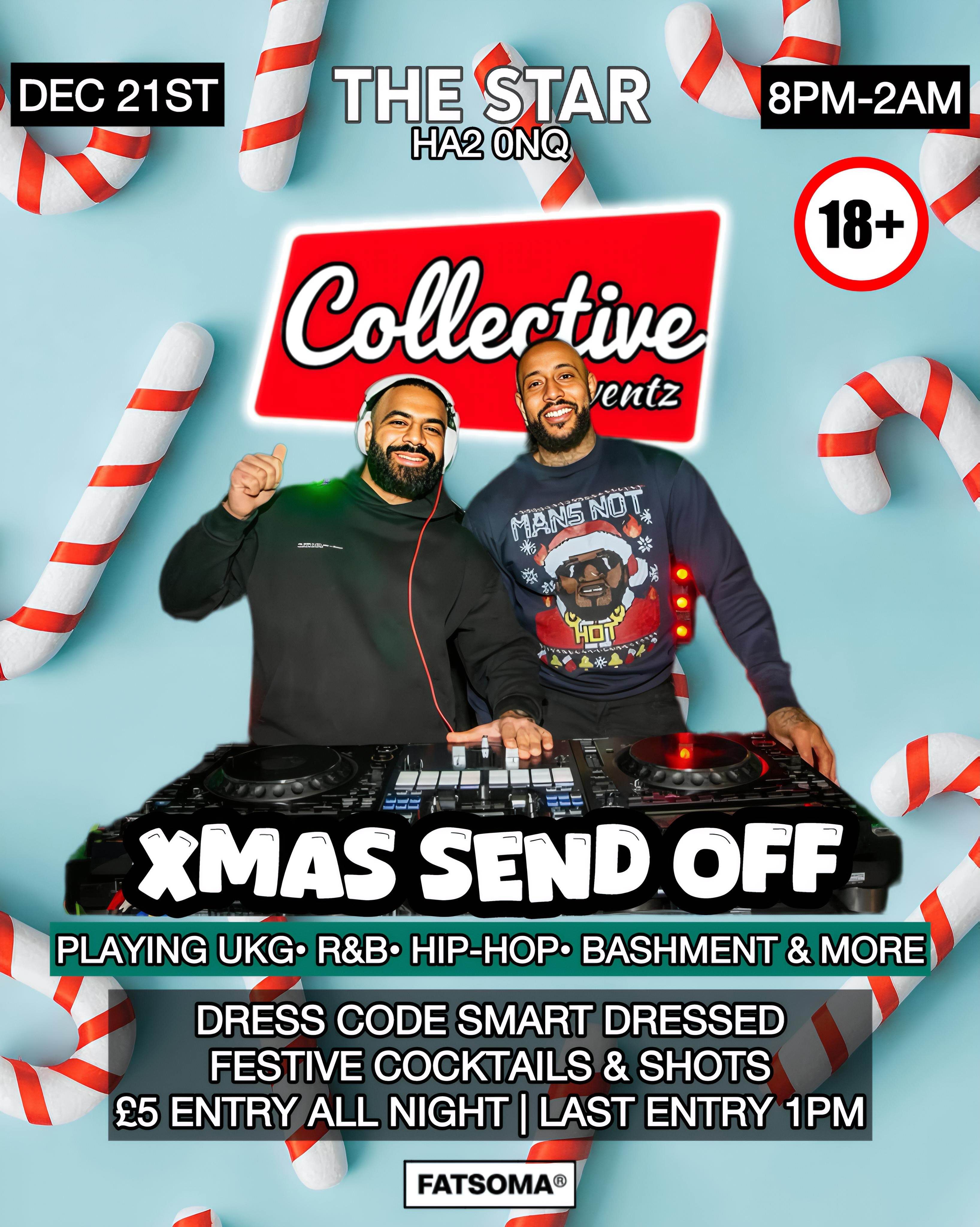 Join us at The Star, HA2 0NQ on Saturday 21st December as we shut down the year in style with nothing but high energy vibes and non-stop party music.