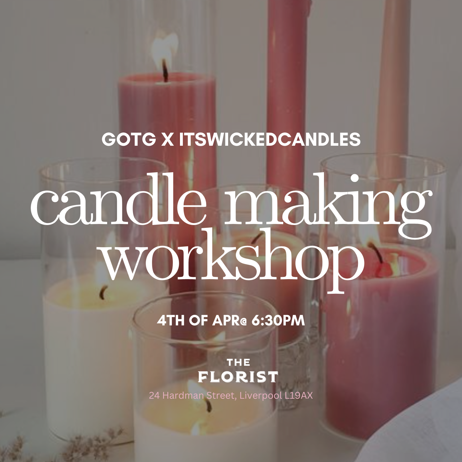 we have teamed up with the lovely @itswickedcandles to bring you our first ever GOTG candle making workshop!!!! During this workshop you will learn all about candles, how to make your very own, you get to choose your own scent & also decorate it however you like!