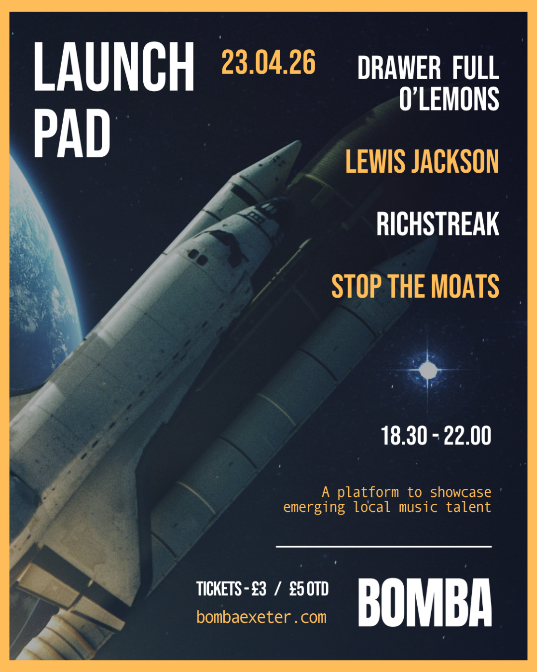 Launch Pad is Bomba's monthly platform showcasing emerging local bands and grassroots artists. An opportunity to catch up and coming talent in an intimate environment before they blow up!