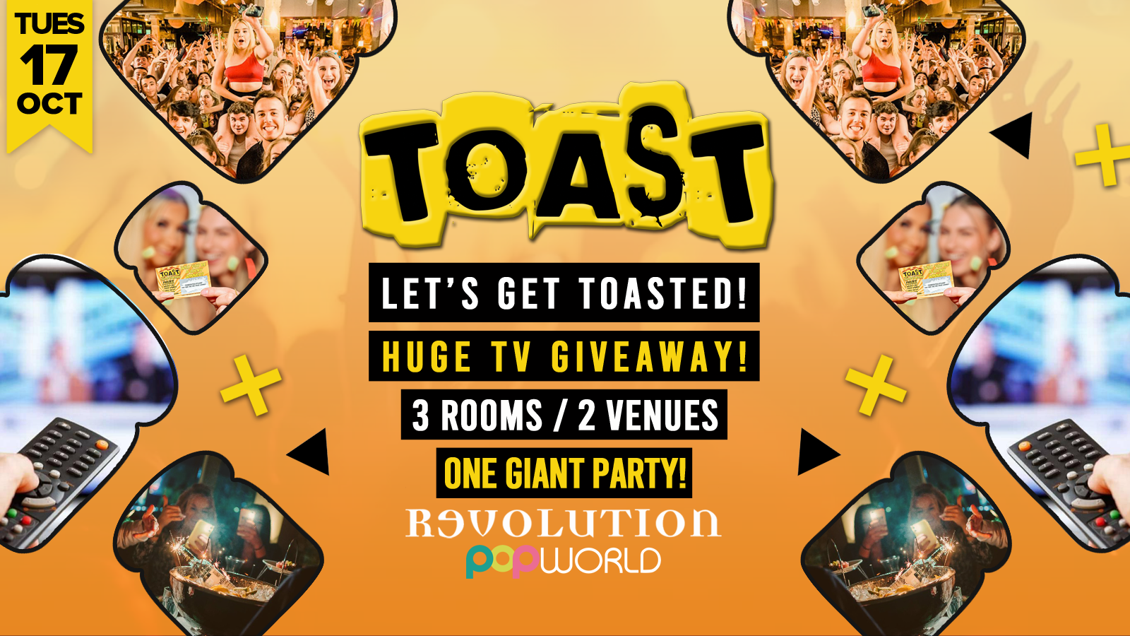 Every Tuesday we will be taking over both Revolution and Bournemouth's brand new venue Popworld with £1.50 drinks, HUGE prize giveaways, three rooms of the best music with the south coast's best DJ's and of course FREE Toast with toppings! (And maybe a few extra treats this year, some say we’re the best thing since sliced bread!)