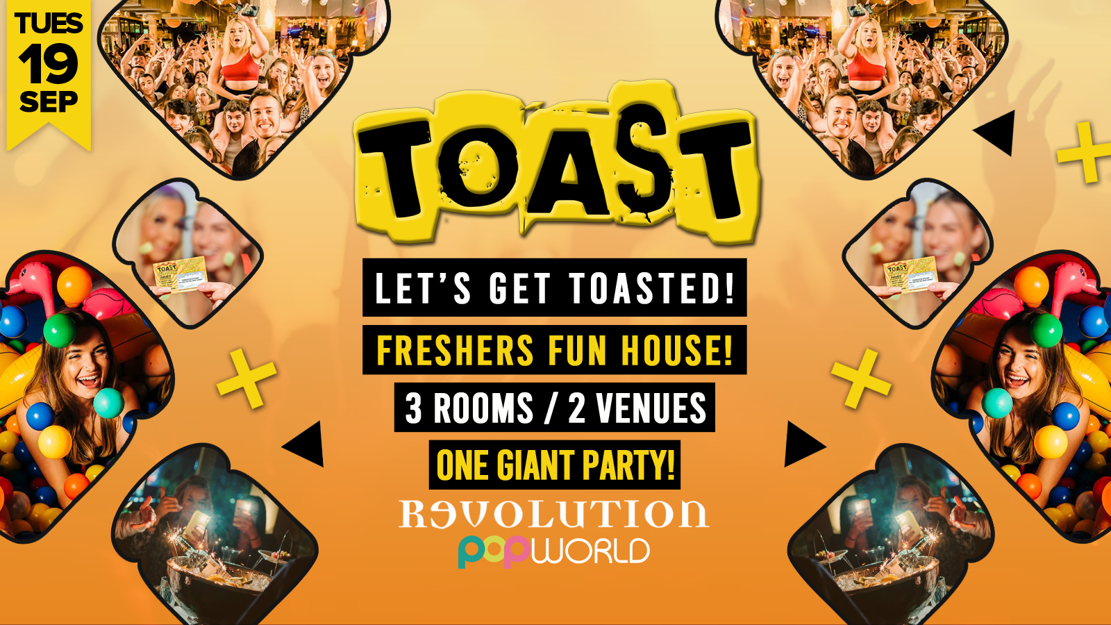 Every Tuesday we will be taking over both Revolution and Bournemouth's brand new venue Popworld with £1.50 drinks, HUGE prize giveaways, three rooms of the best music with the south coast's best DJ's and of course FREE Toast with toppings! (And maybe a few extra treats this year, some say we’re the best thing since sliced bread!)