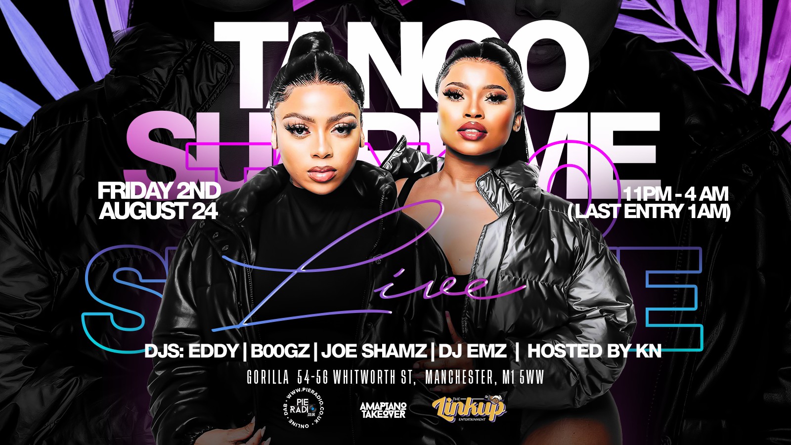 Tango Supreme, consisting of Tiisetso Moncho and Nomfundo Khumalo, are known for their captivating Amapiano sets and engaging performances that get crowds dancing, living up to their tagline, "IT TAKES TWO TO TANGO."