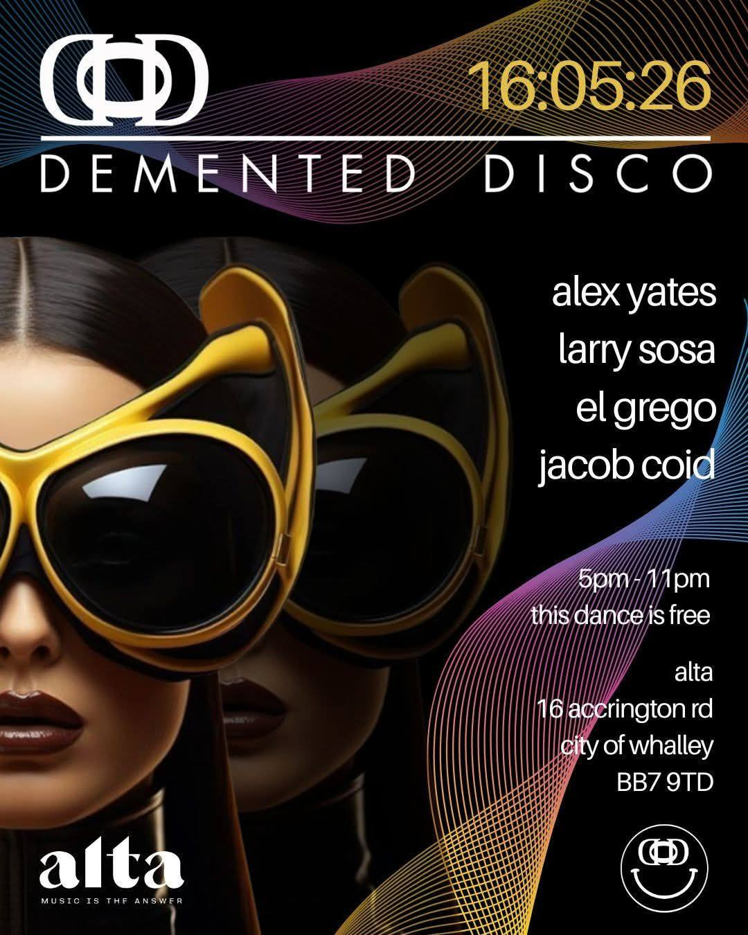 Lancashire dance music aficionados, the Demented Disco crew, roll through the Ribble Valley Hills to the picturesque village of Whalley for an afternoon riot in the former home of Rio’s, Alta Nightclub.