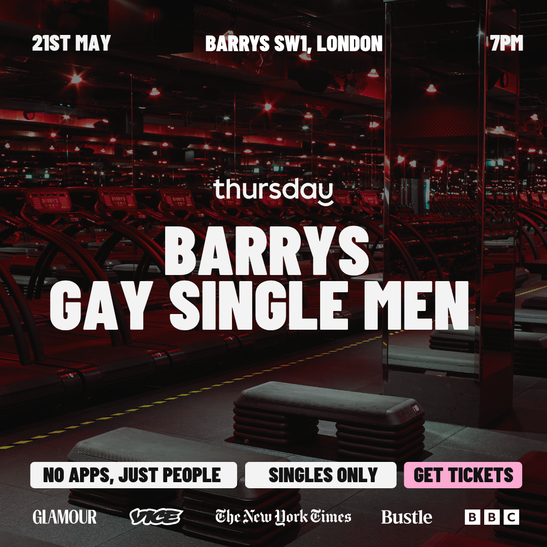 This evening will start with a signature Barry’s workout, red lights, heavy beats, endorphins flowing, then stick around to cool down, connect, and actually meet someone IRL. Expect post-class vibes and a room full of guys who already share at least two things in common: they showed up, and they’re single. Whether you’re here for a spark, a new gym crush, or just a great sweat followed by great company, this is your Thursday plans sorted.