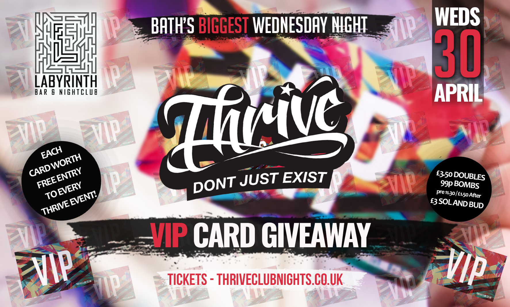 Get ready for the ultimate VIP experience at Thrive Wednesdays! We’re giving away the exclusive VIP Card that grants you FREE entry for life to Thrive Wednesdays at Labyrinth Nightclub! 😱🎉