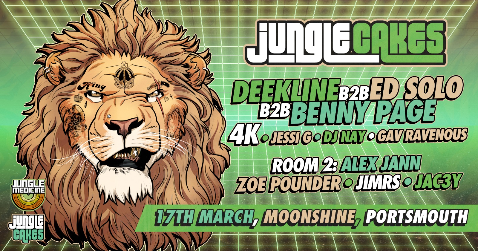 Jungle Cakes are BACK in Portsmouth this time bringing a ridiculous b2b showcase of Ed Solo b2b Deekline b2b Benny Page extended set, alongside Jessi G, 4K and a multitude of the sickest local selectas on the South Coast!