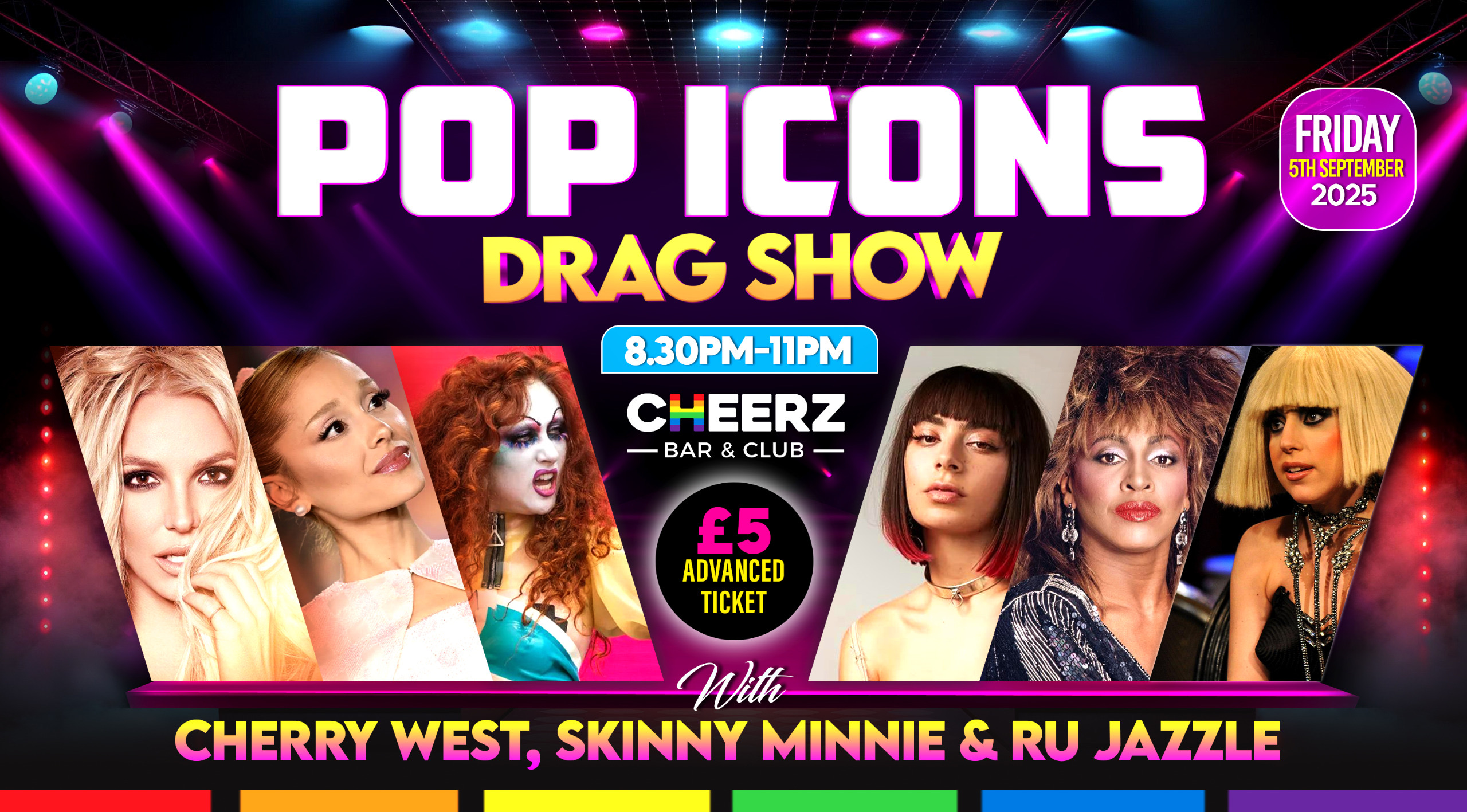 Join us for an unforgettable night of glitz, glamour, and fabulous performances at the Drag Show Extravaganza at Cheerz Nightclub on Friday, 5th September! Get ready to be dazzled as our talented drag queens take the stage to pay tribute to some of the biggest pop idols in music history.