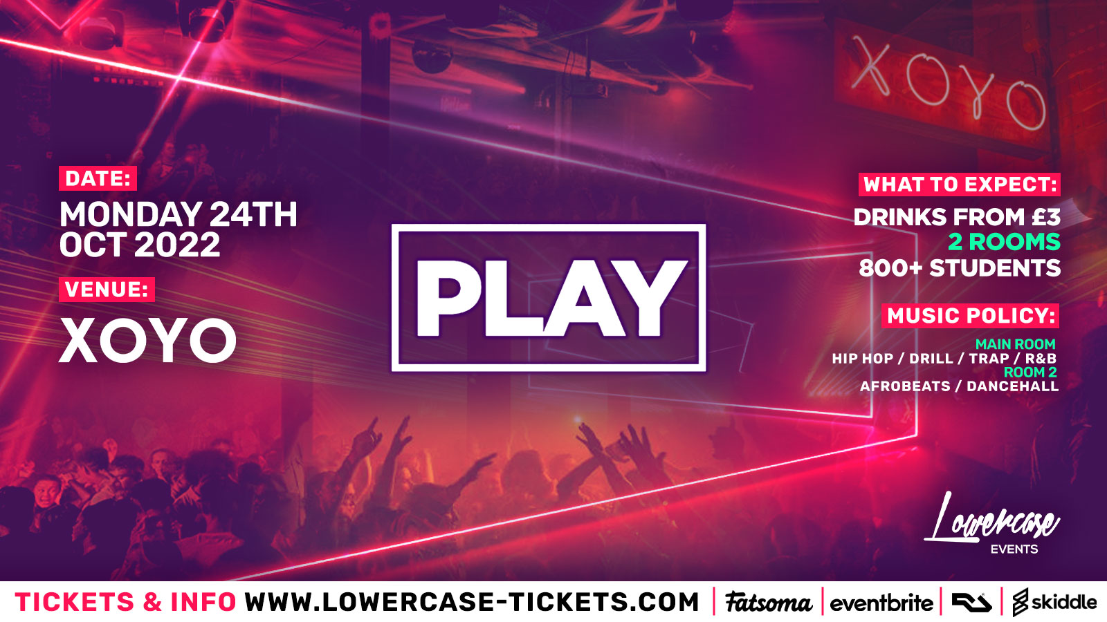 Play London is the BIGGEST student Monday night. Having been running for the last 9 years at one of the most notorious clubs in London, XOYO is the home to what we know is the LITTEST night in London on a Monday!