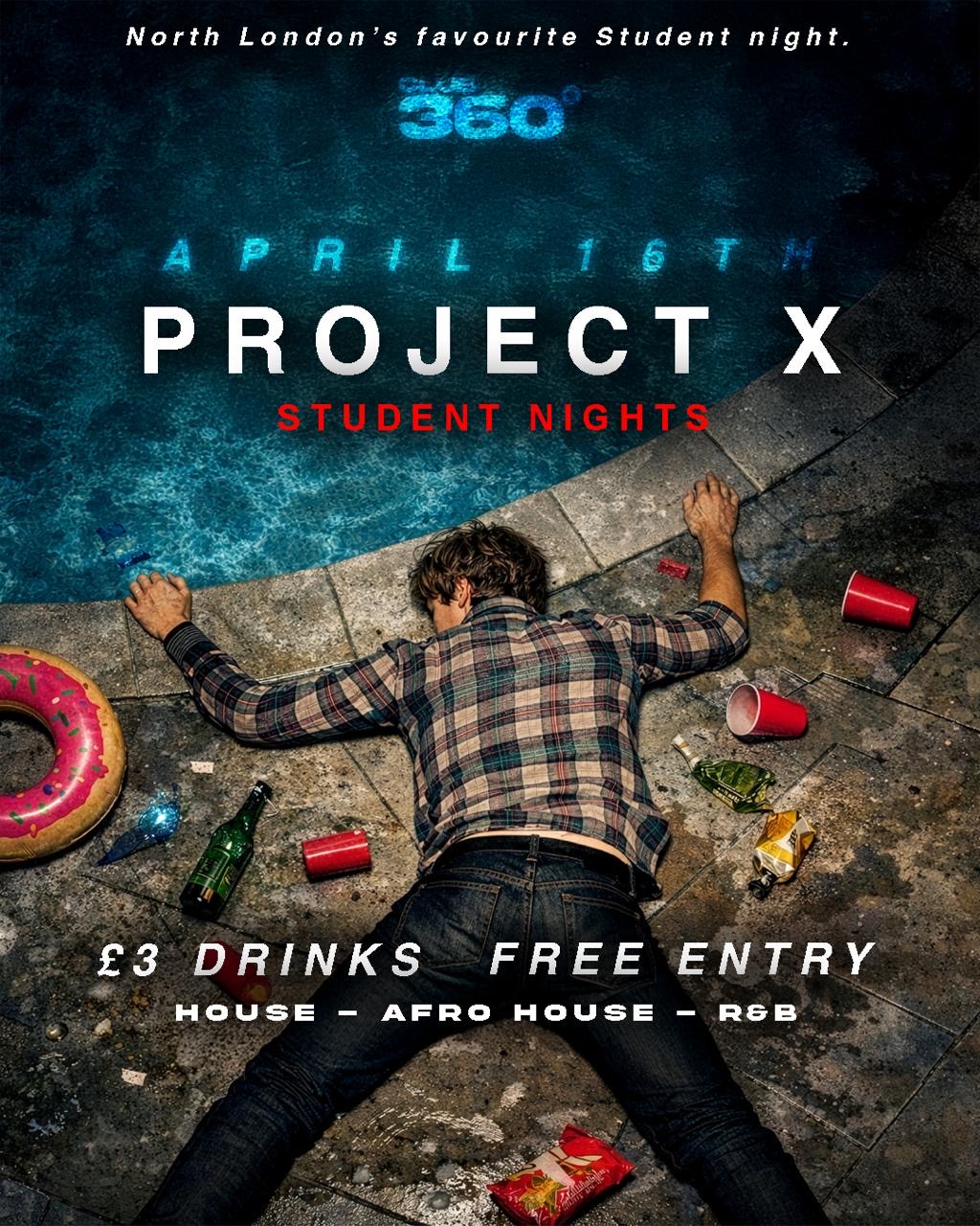 Project X is taking over **Club360, Tottenham Hale** on **April 16th** for a huge student party in North London.