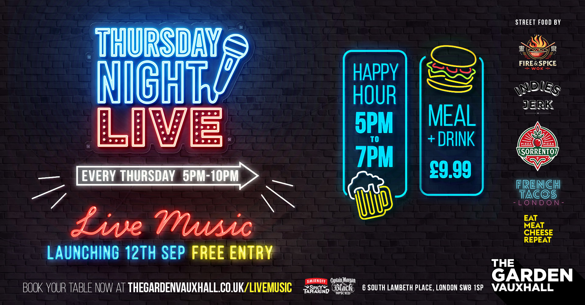 Join us every Thursday after work for a magical winter evening like no other! Introducing 'CHRISTMAS THURSDAY NIGHT LIVE' at the The Garden Vauxhall! 🎄✨