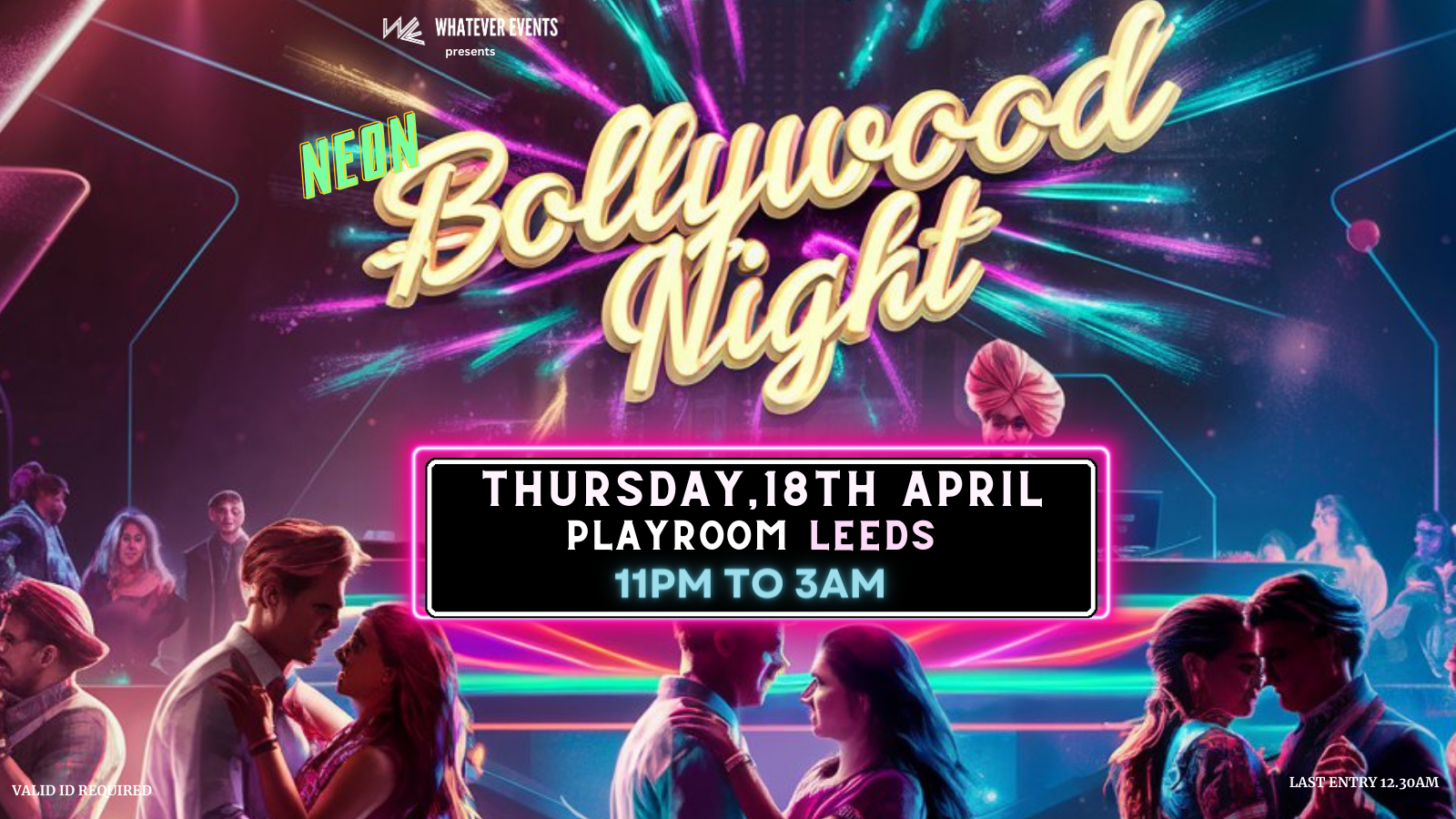 Get ready to light up the night with electrifying beats and vibrant colors at Playroom Leeds' Neon Bollywood Club Night! Join us on Thursday, April 19th, from 11:00 PM to 3:00 AM for an unforgettable fusion of Bollywood glamour and neon energy.