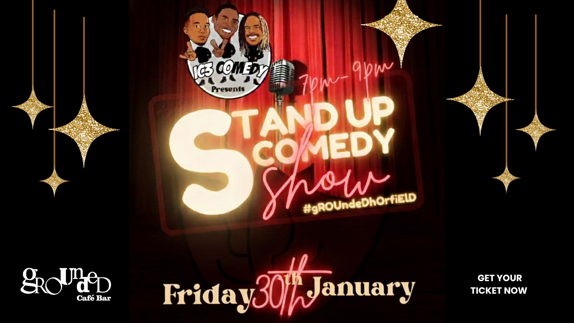 Join us Friday 30th January, 7–9pm for a great night of laughs, brought to you by IC3 Comedy and hosted by the brilliant Omari Douglas.