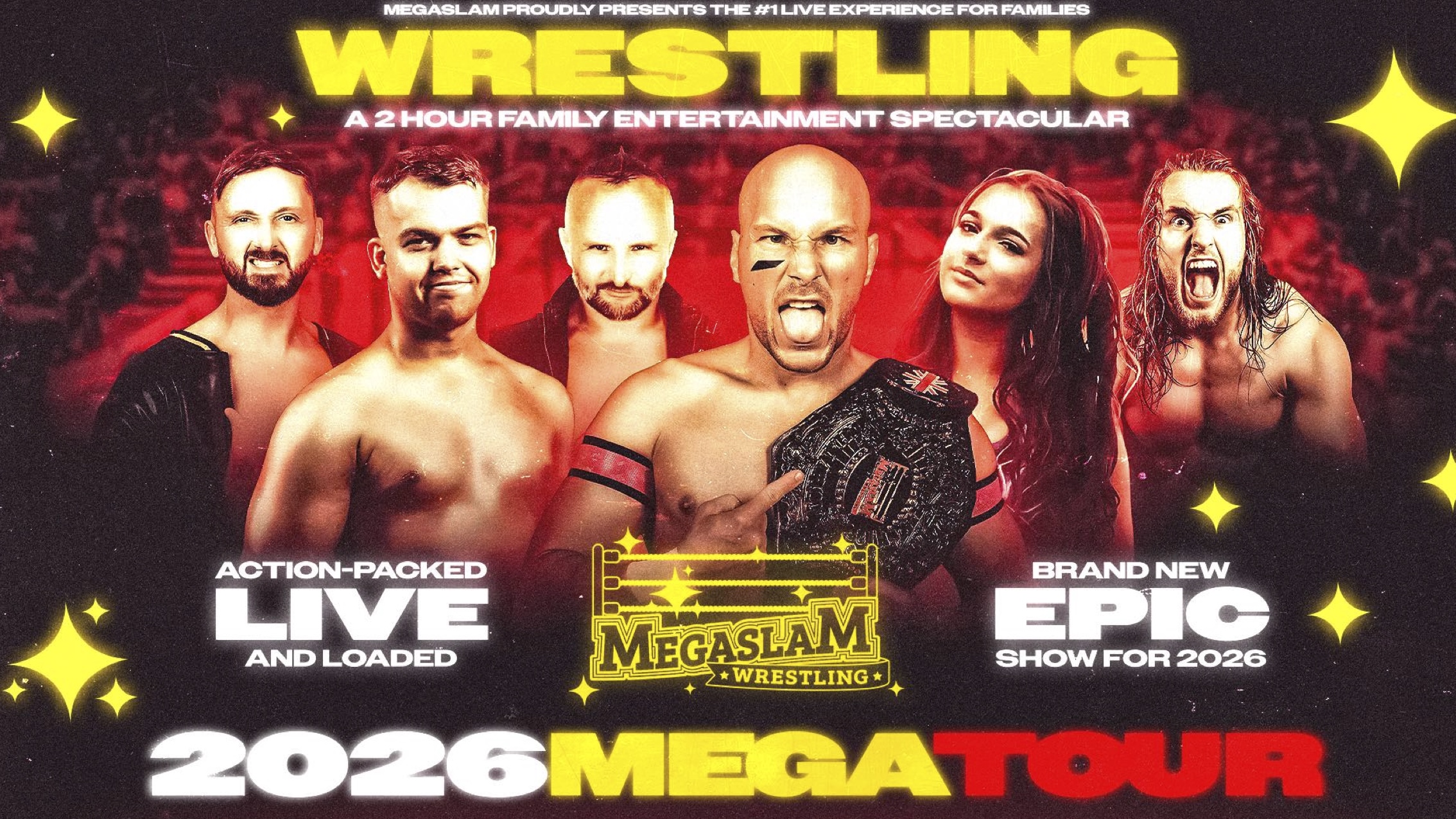 Presenting over 300 Live Events per year, Megaslam bring together some of the World's top Wrestling stars to create a 2 hour family entertainment spectacular that tours throughout the United Kingdom.