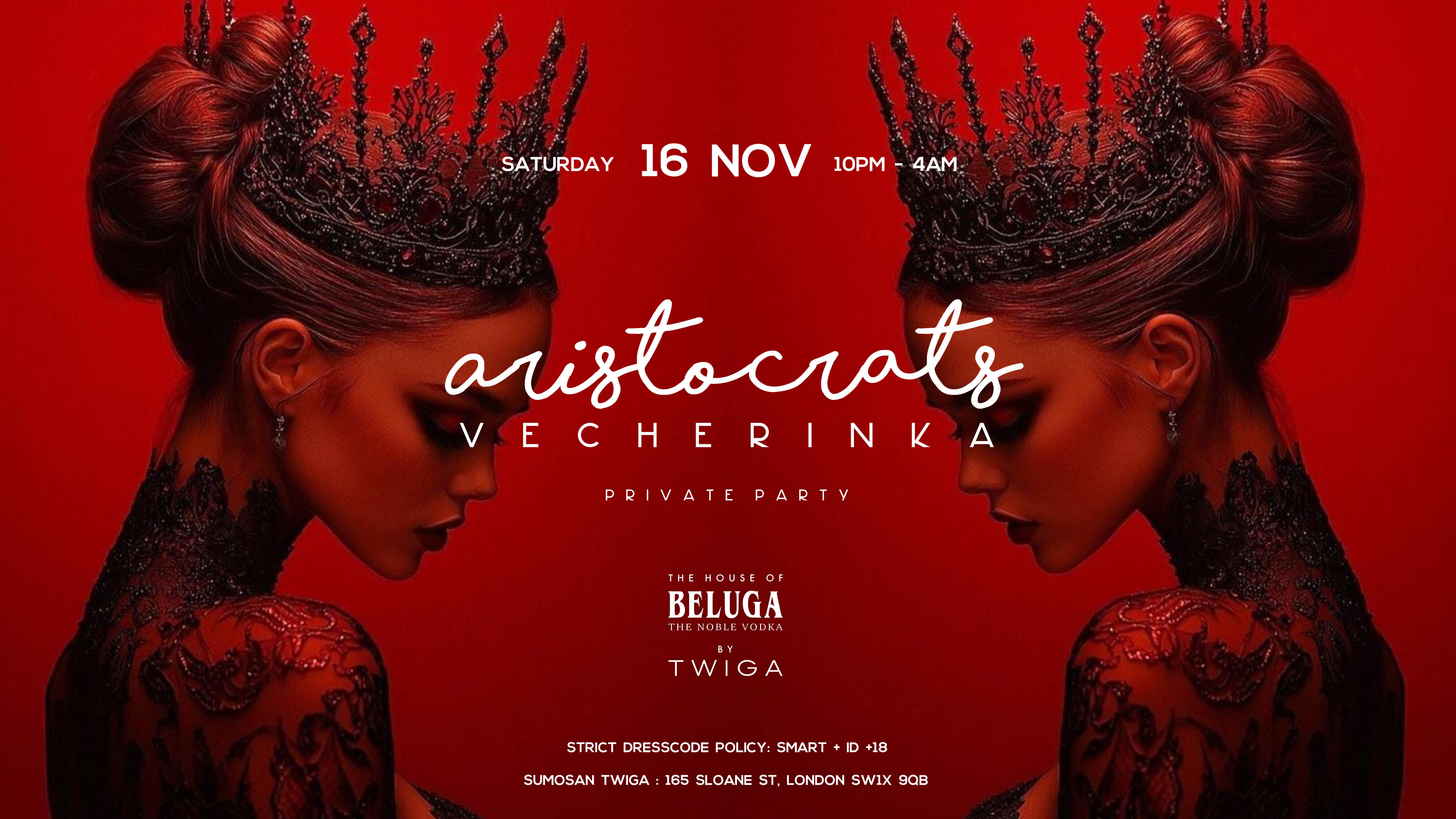 London - November 16, Saturday, from 10 PM to 4 AM, private party "Aristocrats" at the exclusive club SUMOSAN TWIGA. Entry is strictly by guest list and tickets only. A strict SMART dress code will be enforced at the door.
