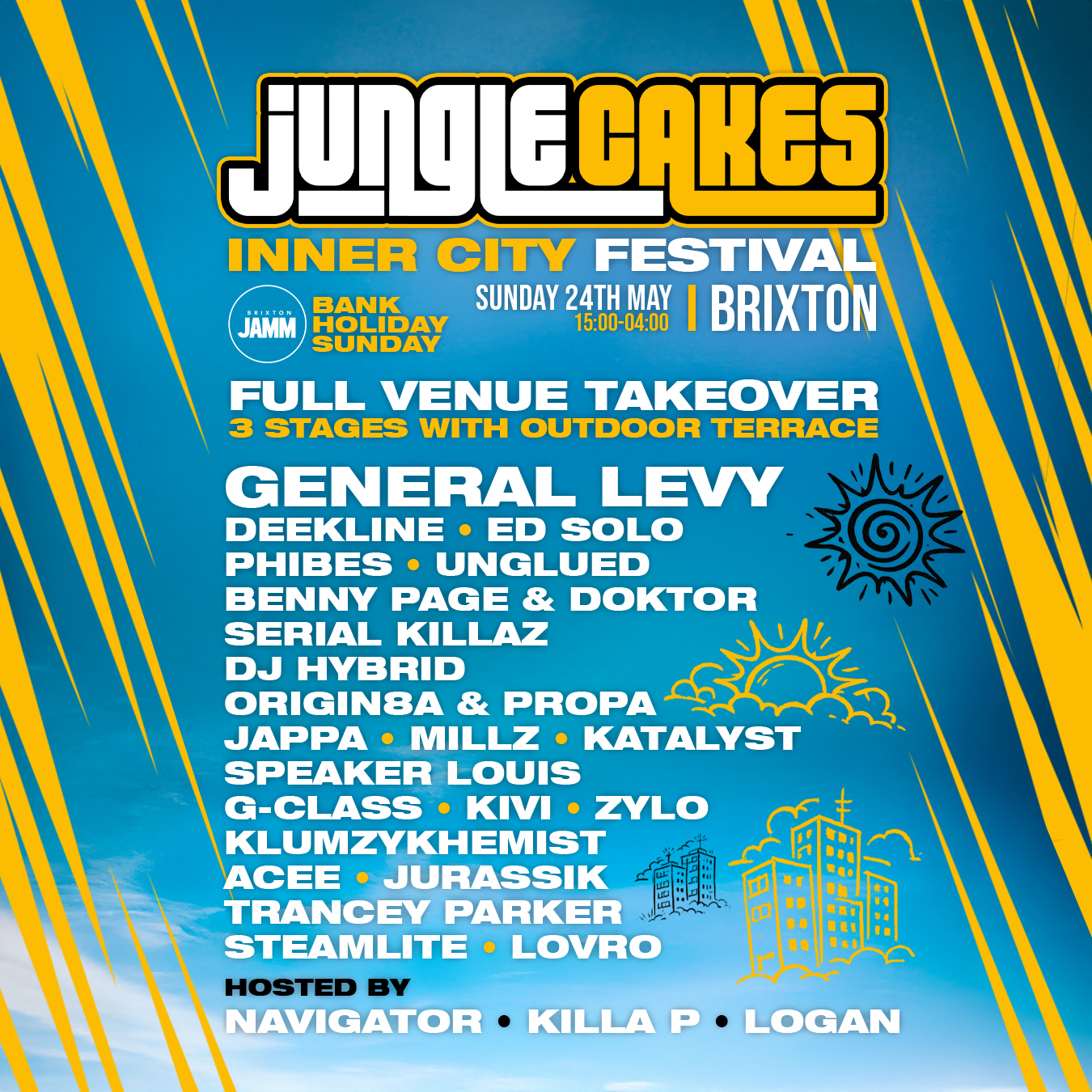 The vibes are coming! For our biggest event ever, Jungle Cakes lands in our home city of London! For a 3 stage inner city festival thats not to be missed on Bank Holiday Sunday 24th May.
