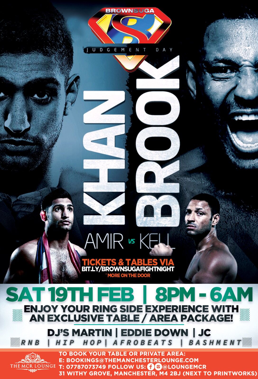 Enjoy all the live fight night action at the MCR Lounge as Khan takes on Brook at The AO Arena in Manchester!