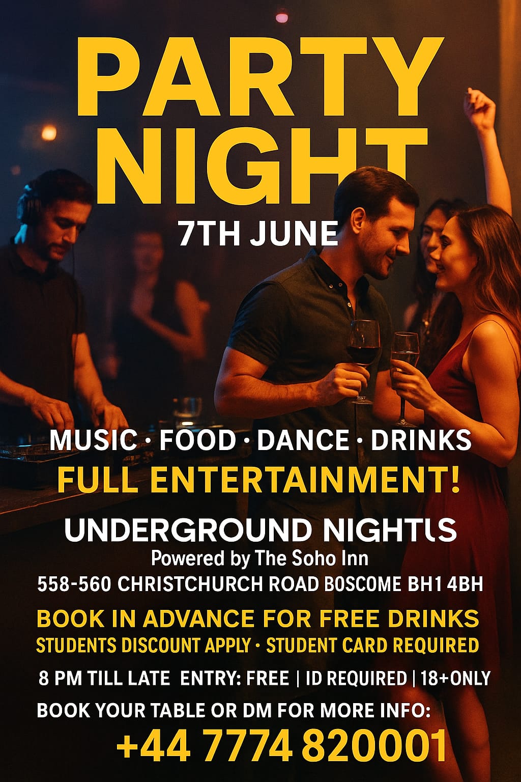 ๐ Venue: Underground Nights, 558-560 Christchurch Road, Boscombe BH1 4BH