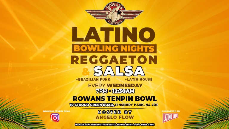 Join the ultimate Latin party experience at Rowans Latino Bowling Nights in the heart of North London. Hosted at Rowans Tenpin Bowl in Finsbury Park. Prepare to ignite the dance floor with sizzling Latin beats, indulge in festive games, and revel in a night of unbridled celebration.