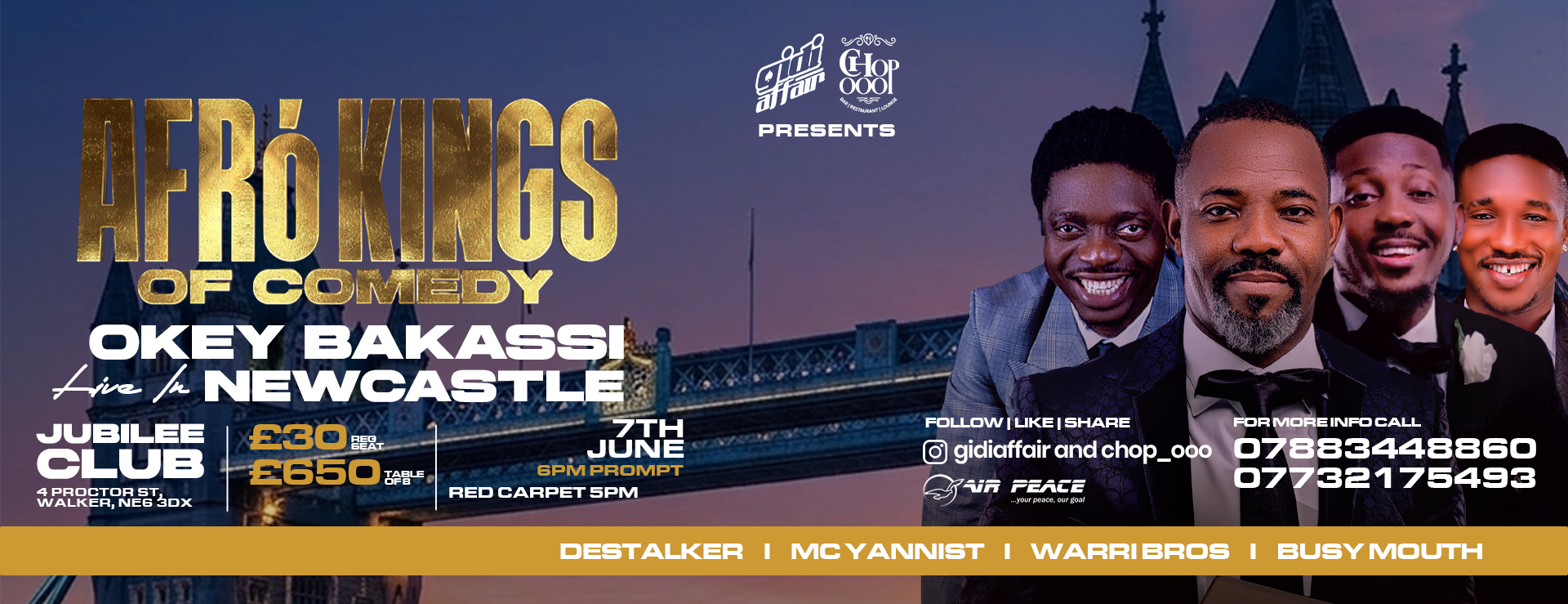 This is not just a comedy show, it’s a full experience of the finest voices in African comedy, all on one stage, bringing the heat straight to Newcastle! Get ready for a night PACKED with: