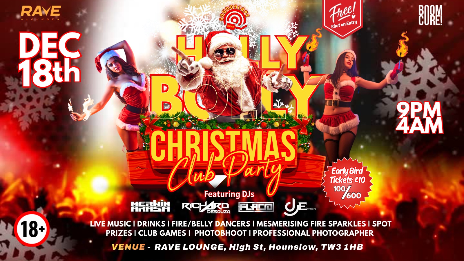 Join us for an unforgettable night of celebration on Thursday, December 18th, 2025, from 9:00 PM to 4:00 AM at Rave Lounge, Hight Street, Hounslow TW3 1HB.