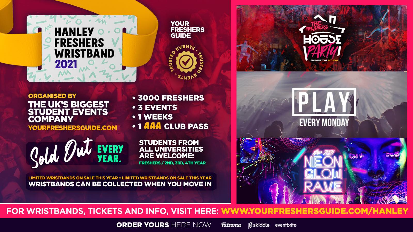 PLEASE NOTE: If you bought one of our Hanley Freshers 2020 Wristbands then these are now transferred & valid for these events!