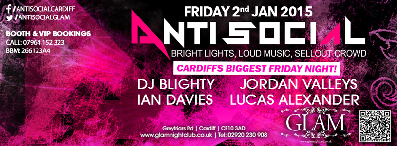 W: www.antisocialcardiff.co.uk E: antisocial@glamnightclub.co.uk
