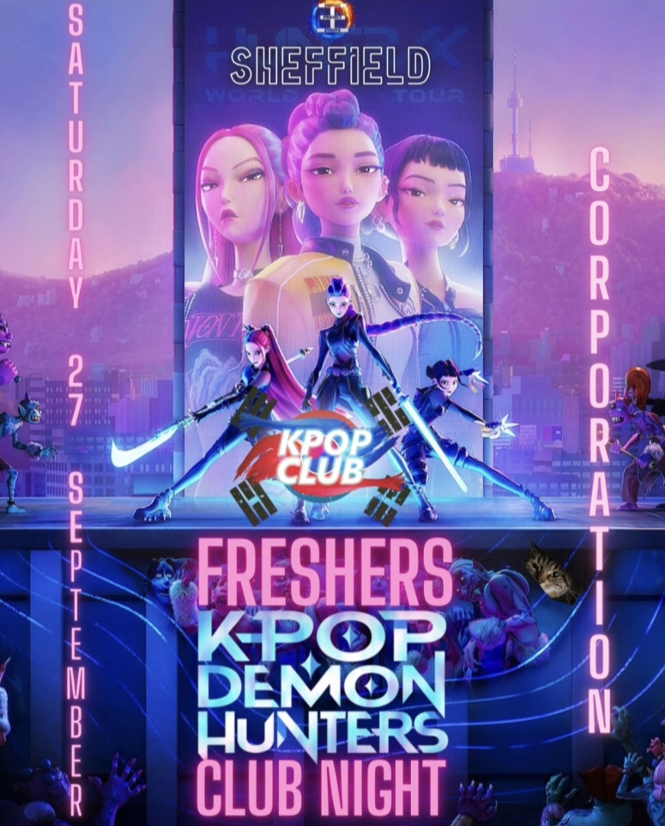 SHEFFIELD! Freshers is upon us ans Its your turn for a KPOP DEMON HUNTERS CLUB NIGHT! The film and Golden have shot through to number 1 on the most watched and most listened to list, in celebration, On saturday 27th September, @kpopclubevents & @madeinasiaevents join together with Corporation to bring the biggest Asian event of the year to Sheffield ❤️