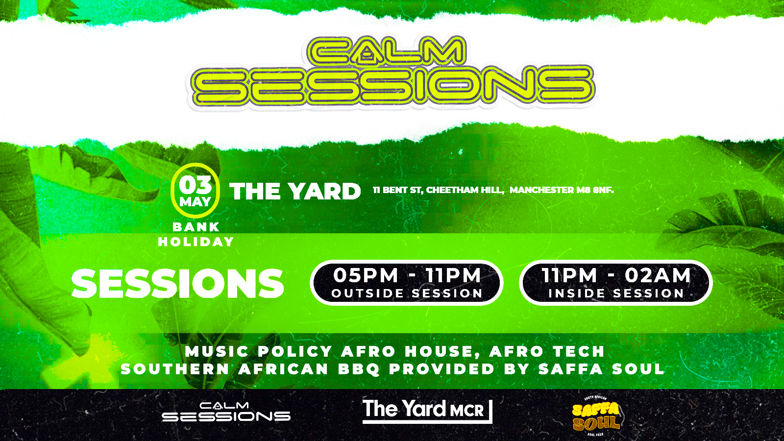 Join us Bank Holiday Sunday, 3rd May 2026 at The Yard, Cheetham Hill — the perfect outdoor setting for what Calm Sessions is about.