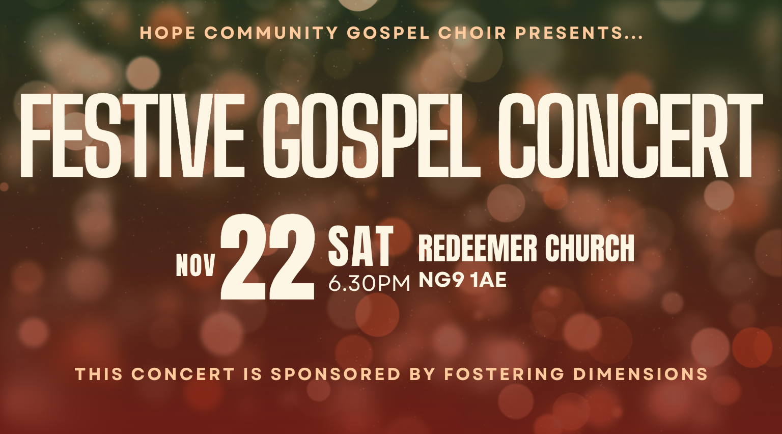 Join us for an uplifting evening of music and cheer at our Festive Gospel Concert! This special event will bring our community together in celebration.