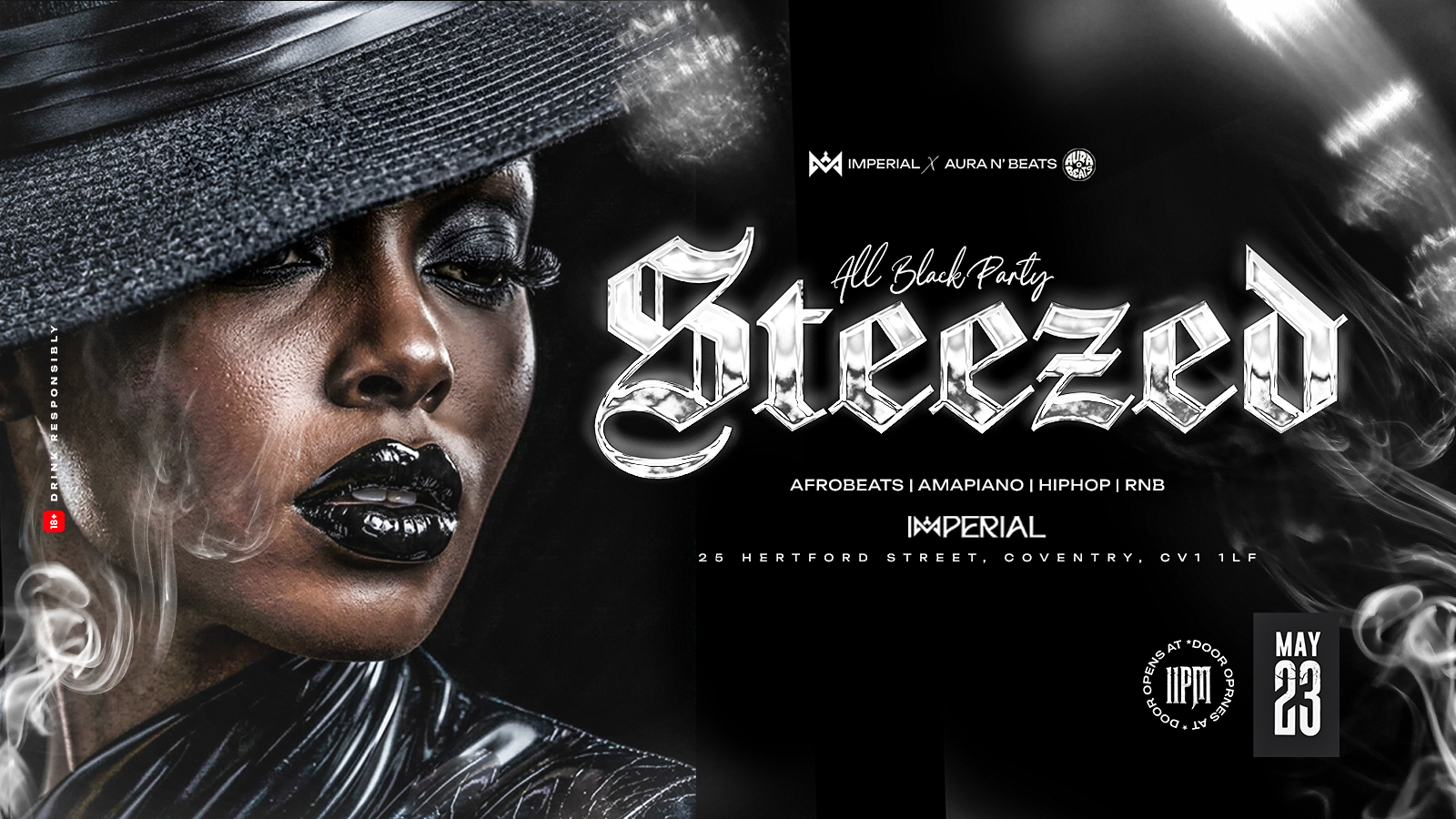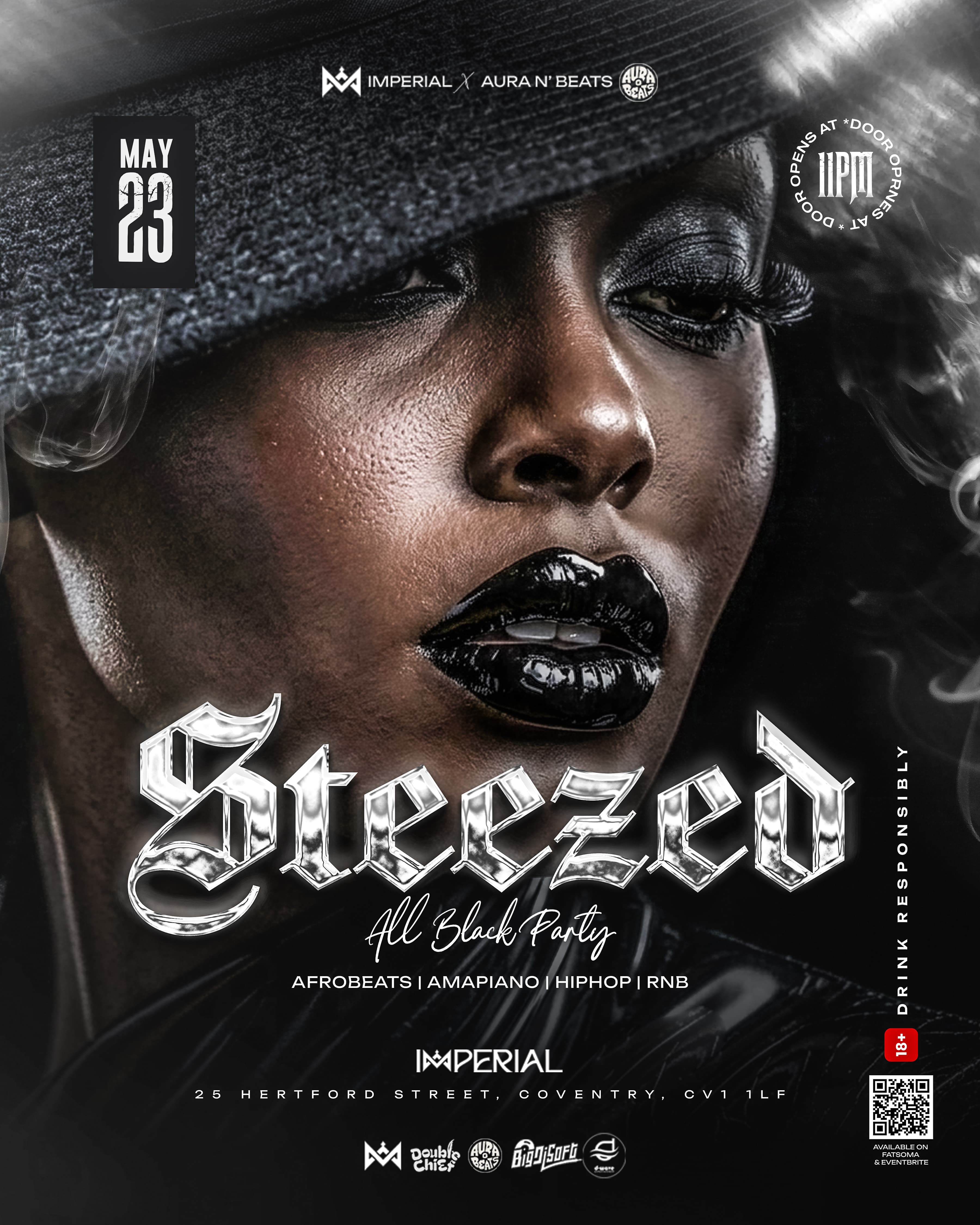 All black, All night, show up with steeze!Step in clean, step out unforgettable. If your fit isn’t talking… you’re doing it wrong.Doors open 11PM | May 23IMPERIAL - 25 Hertford street Coventry CV1 1LFBlack fits only.