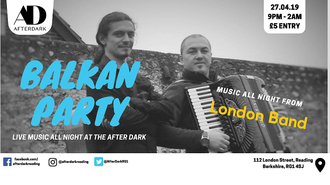 Join us at the After Dark Club as we welcome London Band who will be bringing us a night of Macedonian and Serbian pop-folk music. They will be playing traditional Balkan rhythms and melodies and if you're not familiar with Balkan music, this is a unique chance to check it out.