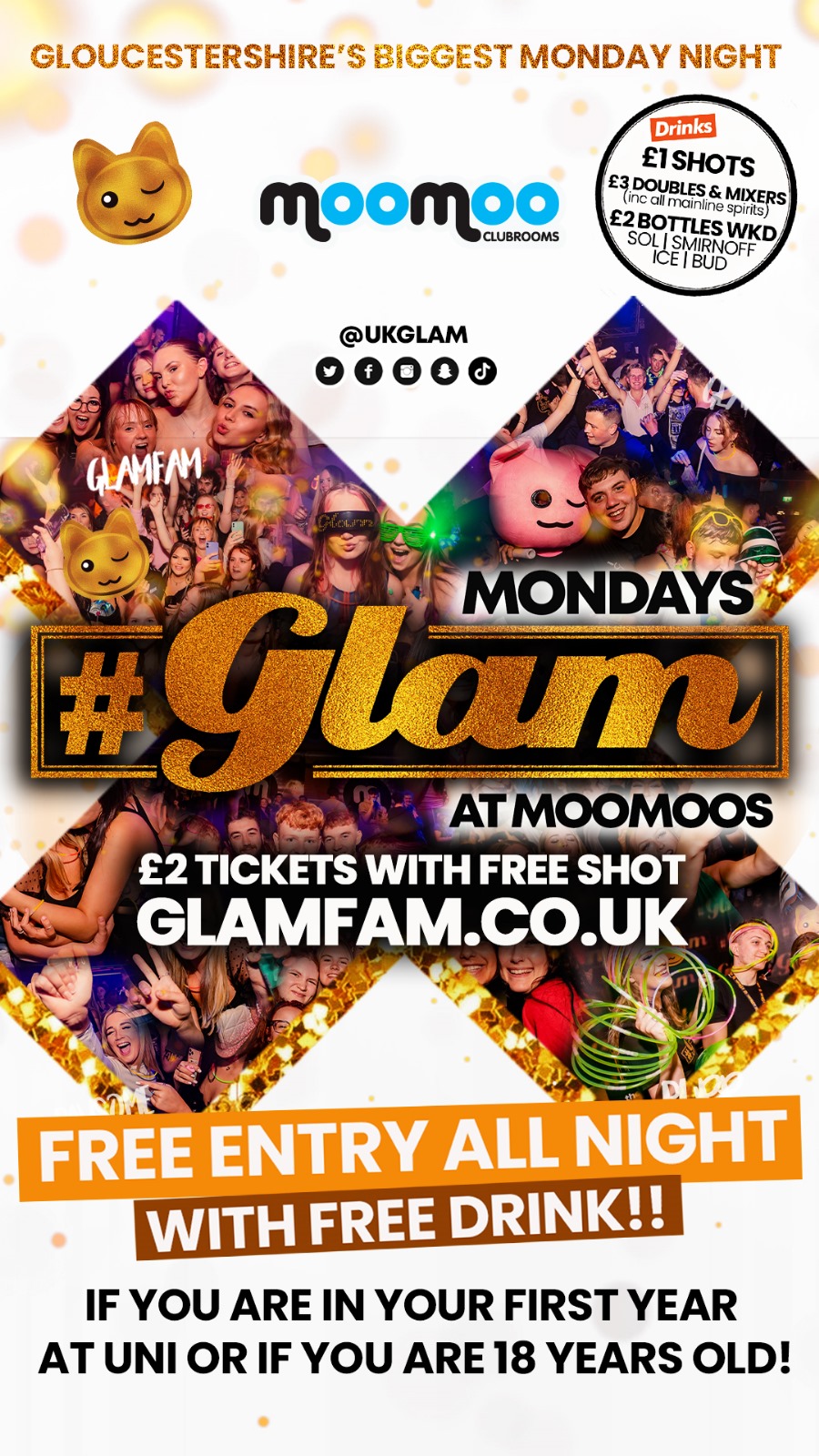 Glam - Glam - £2 TICKETS WITH SHOT VALID ALL NIGHT! Gloucestershire's Biggest Monday Night 😻