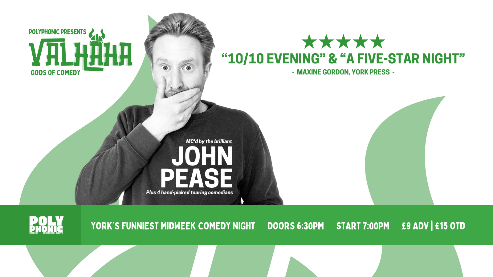 👑 Featuring our brilliant MC, John Pease and 4 handpicked comedians from the UK circuit. Full lineup confirmed via social media, trust us, our acts are not one to missed.
