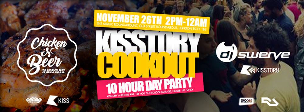 Chicken, beer and KISSTORY! We are throwing a daytime party in the heart of East London and have invited Kiss FM & Kisstory's DJ Swerve to dish out some tunage for us. Expect 10 hours of fun that will include: DJs, BBQs, street food, beer, dancing, face painting, giveaways and much more by way of surprise! Hit "going' and watch this space for more info!