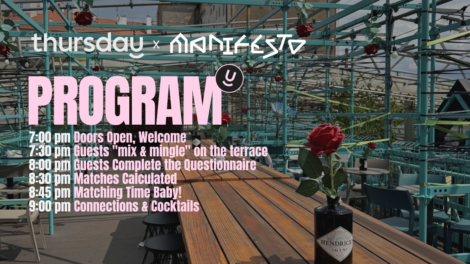 In collaboration with Manifesto Market, we invite you to another evening of summer music, mingling & ... what we call live - IN REAL LIFE matching, all on your own private terrace.