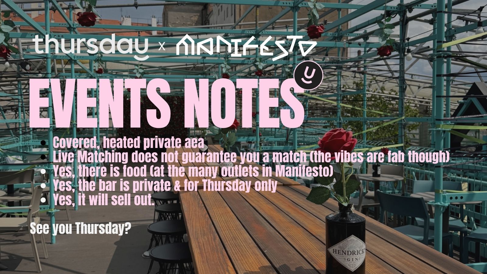 By purchasing a ticket to a Thursday Event, you are agreeing to our T&C's and to abide by our Code of Conduct. Both found here.
