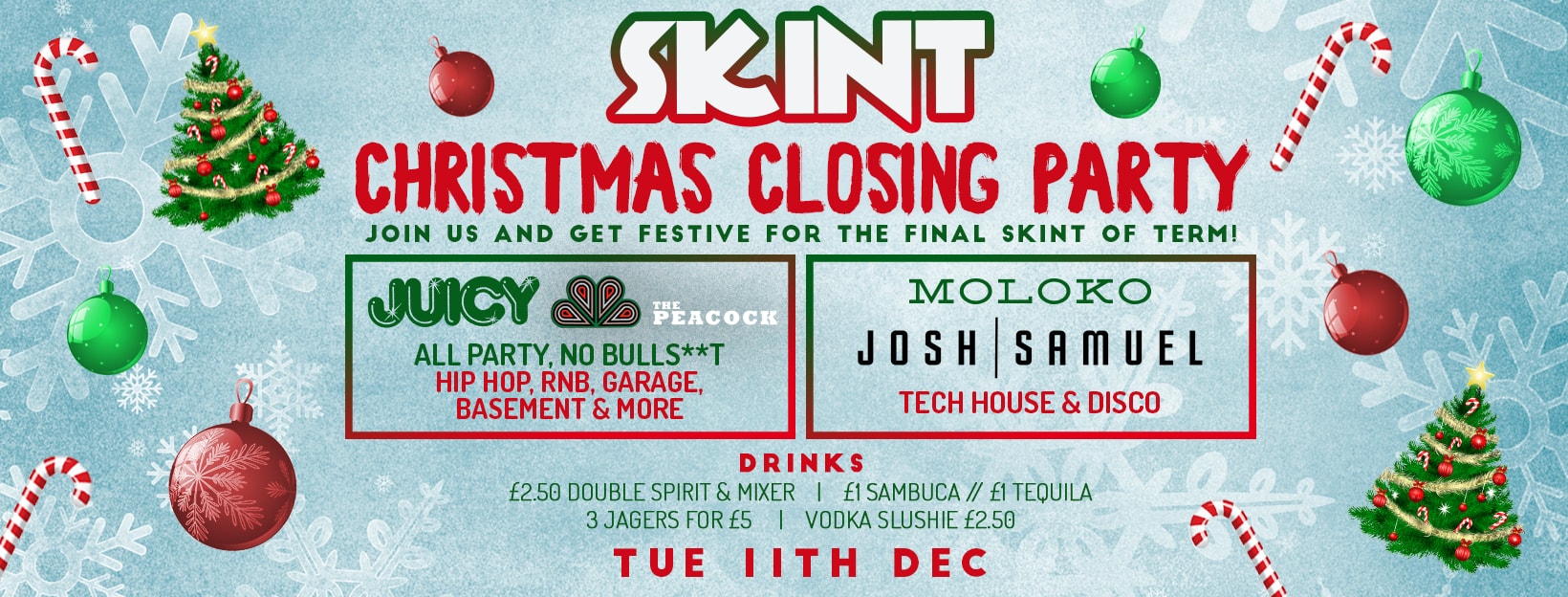 - SKINT : Tues 11th Dec : Christmas Closing Party - Join us for the final SKINT before the Xmas break!