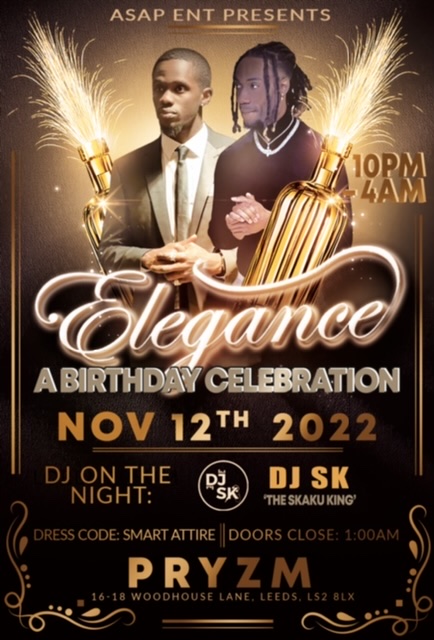 Asap ent is back with another party and once again breaking the rules and changing the game. This time the motive is called ‘Elegánce and as this name suggests it’s a different type of theme that requires you to be more formal and traditional, so put on your best suit, turtle neck, any type of formal wear or pull up on your best African traditional attire , and ladies be the queens that you are and follow suit 🤵🏿💃🏿