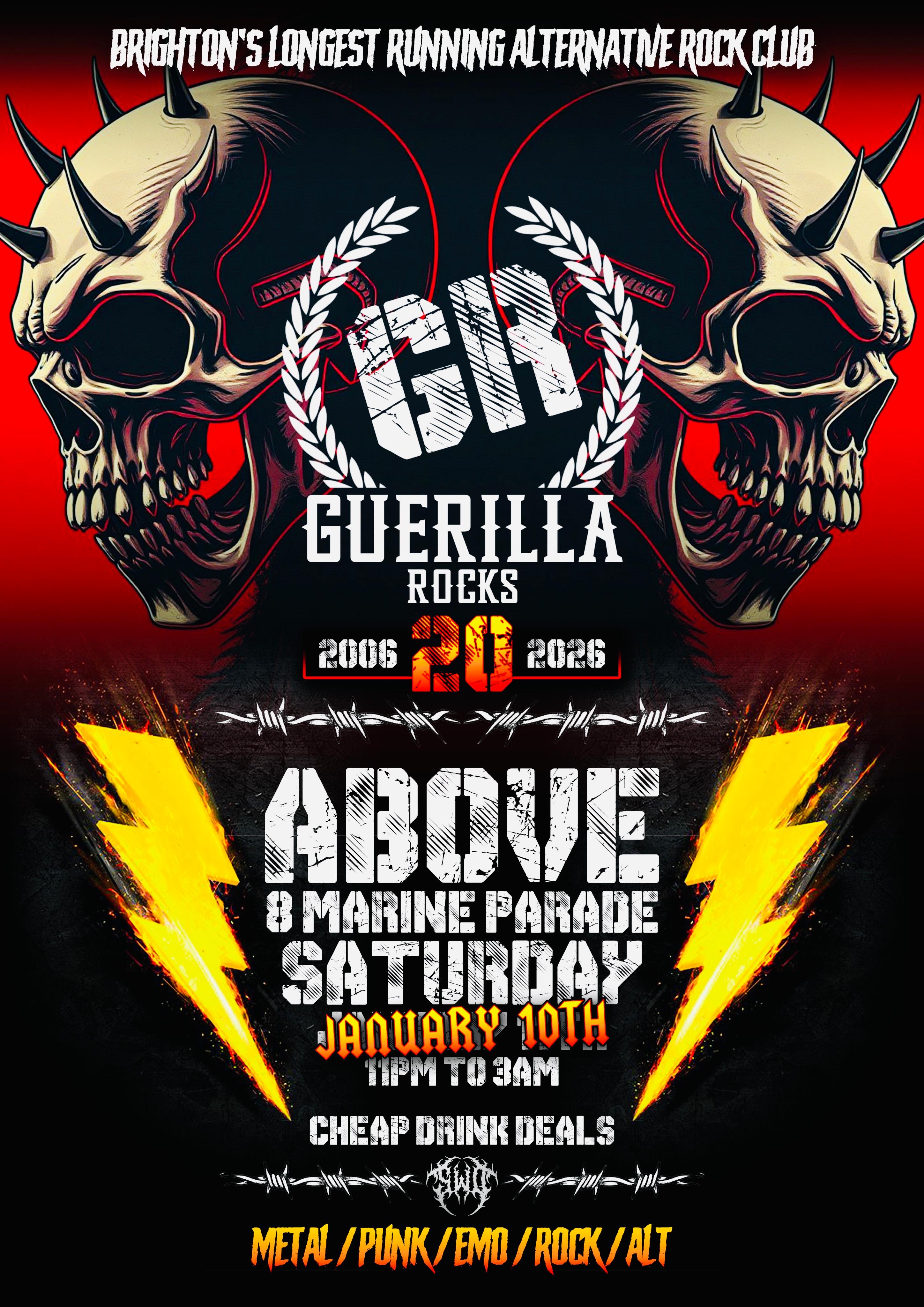 Hey folks, we're Guerilla Rocks and we've been running for nineteen years - and now we are Brighton's longest running club night (we think)!