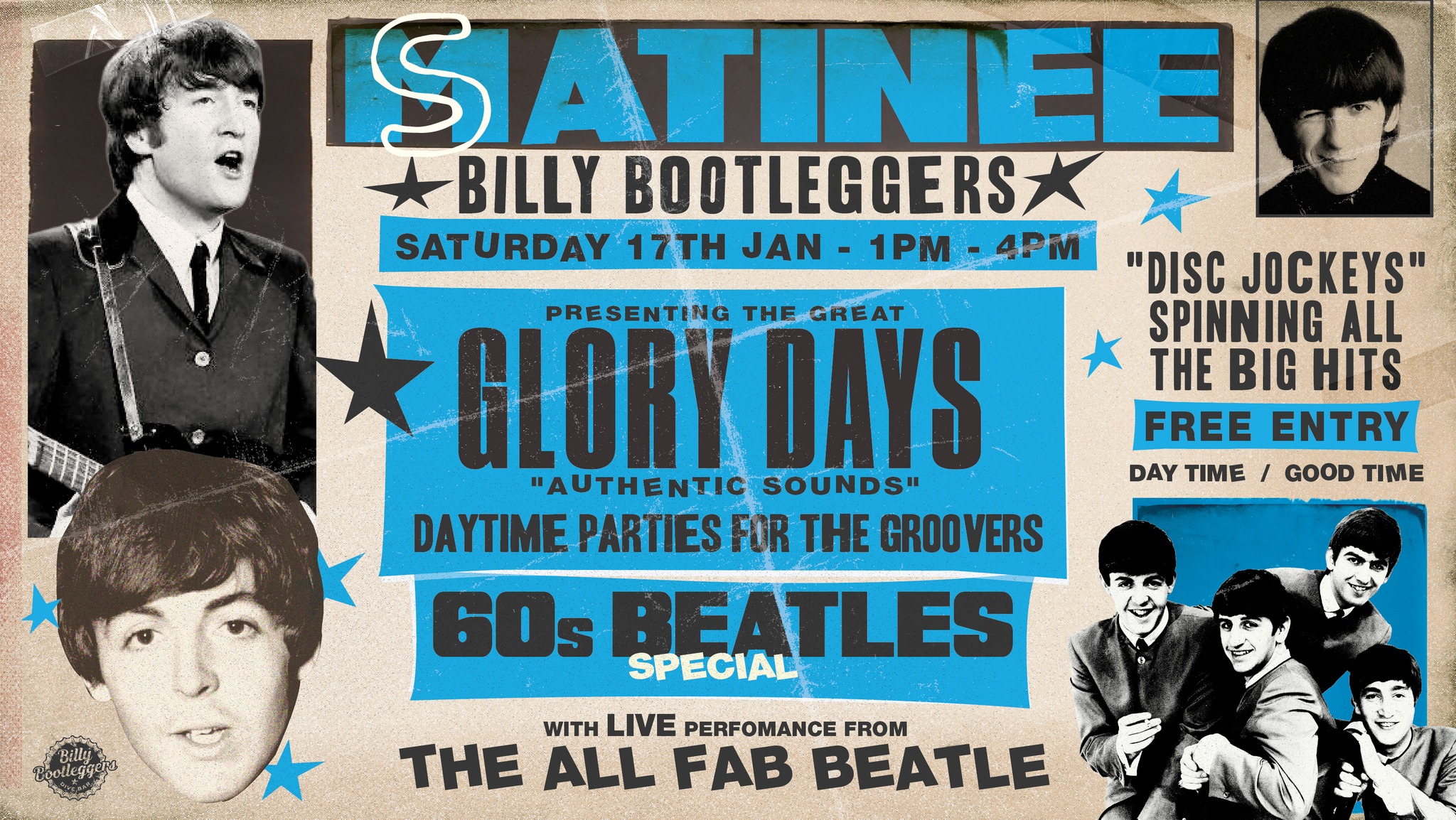 We're taking you back to the Glory Days of music with our Disc Jockeys spinning all the biggest and best 60s Beatles hits!!